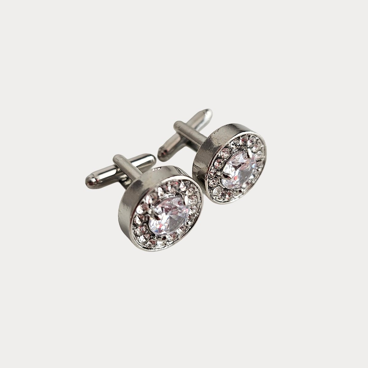 Black Sparkly Faux Crystals Circle Silver Colour Metal Cufflinks