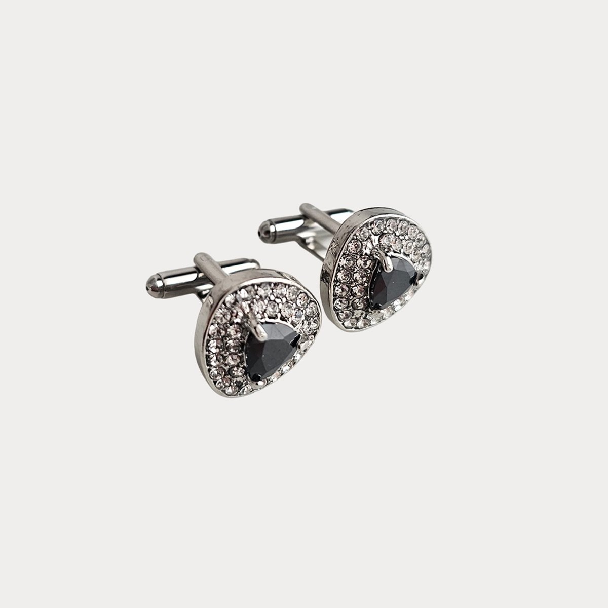 Black Sparkly Faux Crystals Silver Colour Metal Cufflinks