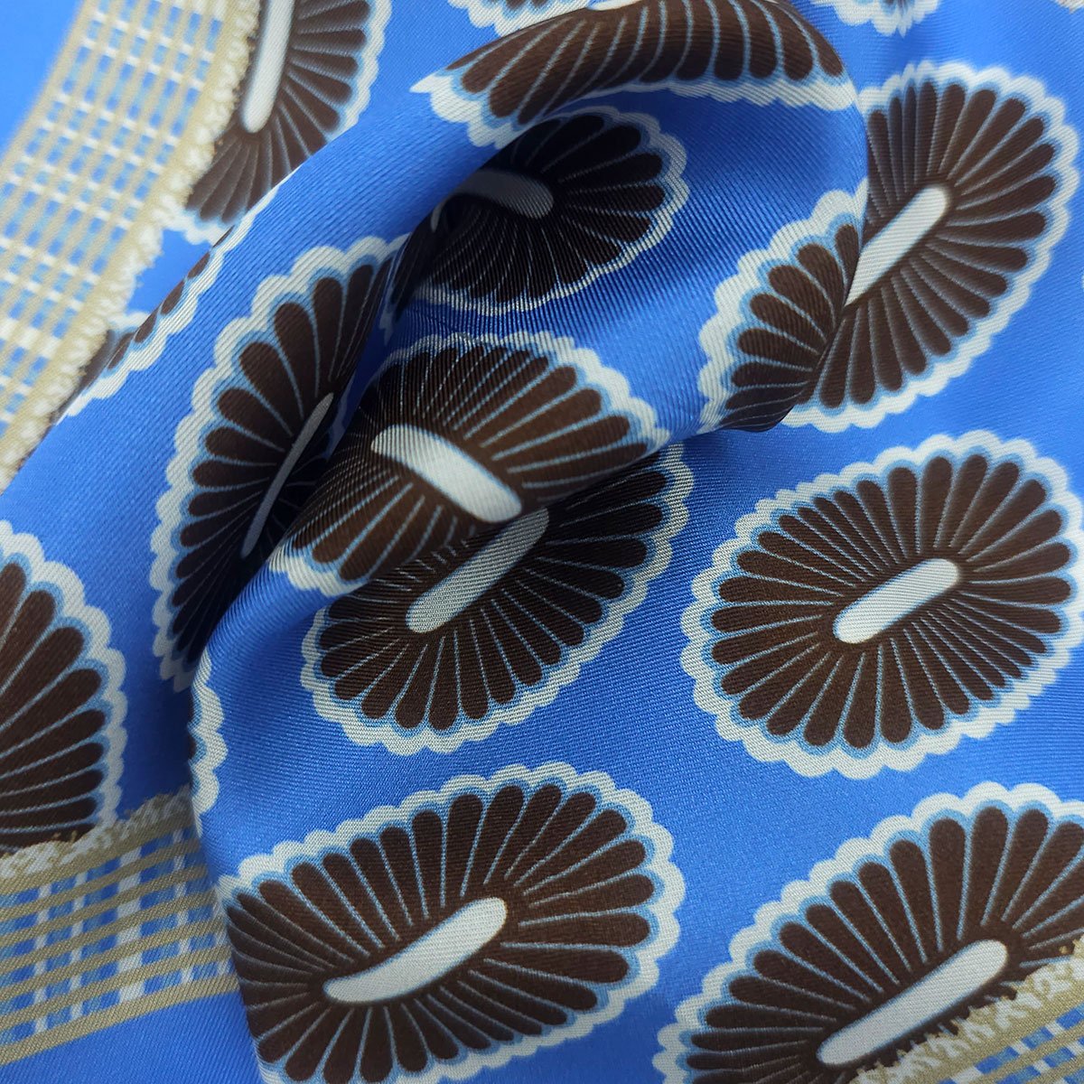 Blue Border Brown Pattern Pocket Square