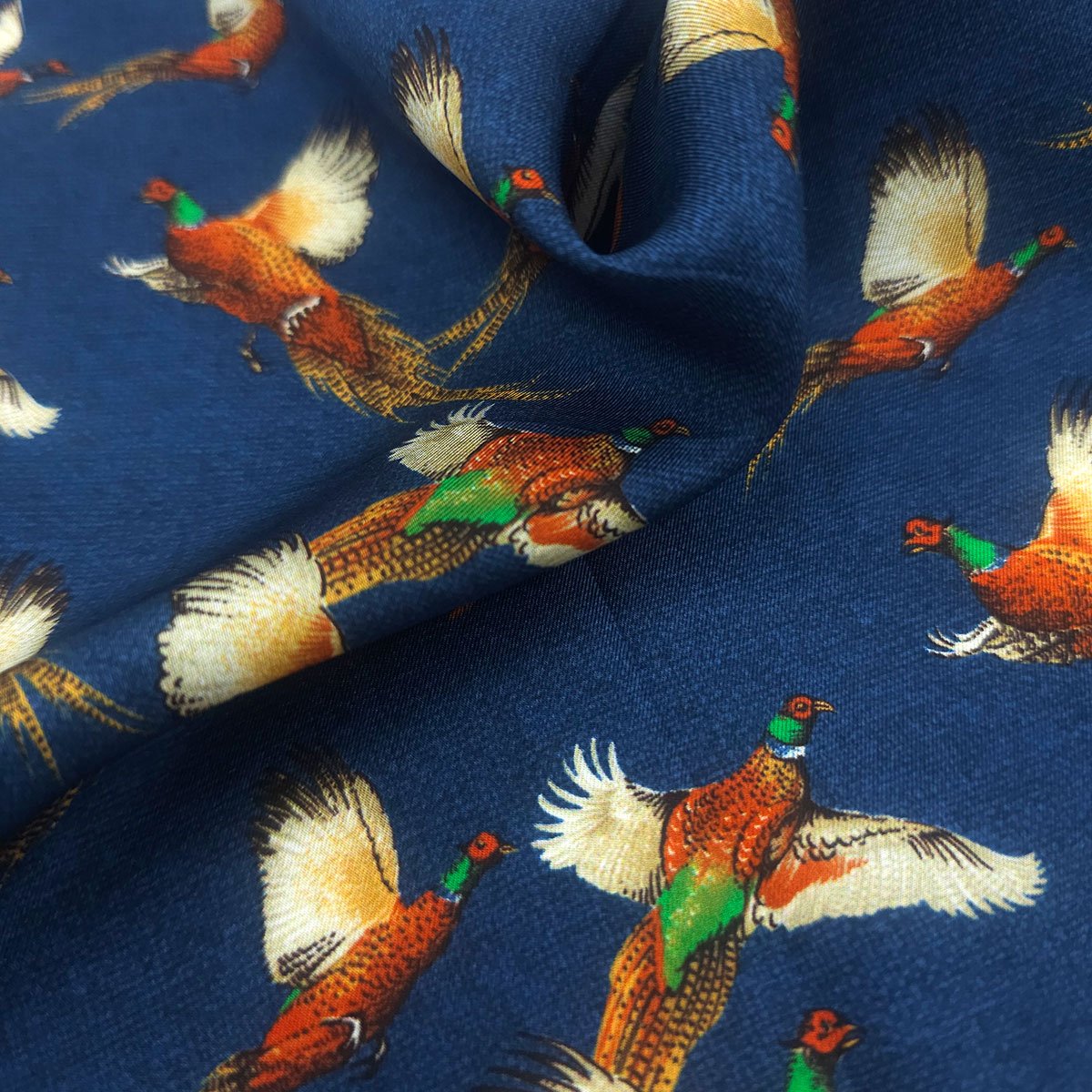 Dark Royal Blue Pheasant Pattern Pure Silk Pocket Square