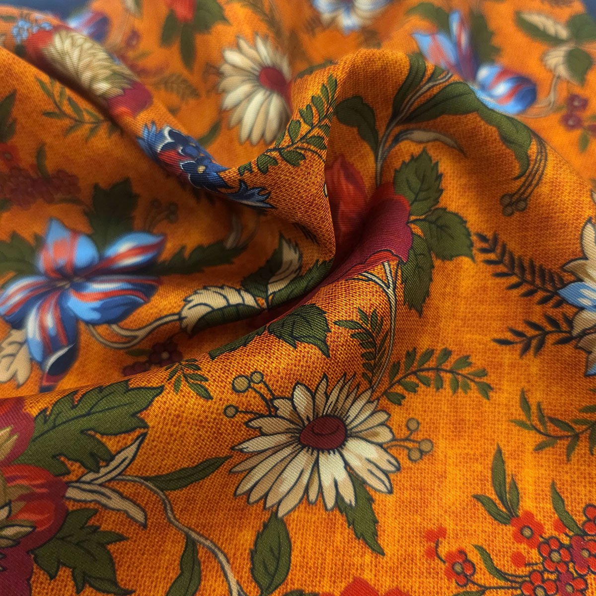 Floral Cinnamon Rust Navy Border Pocket Square