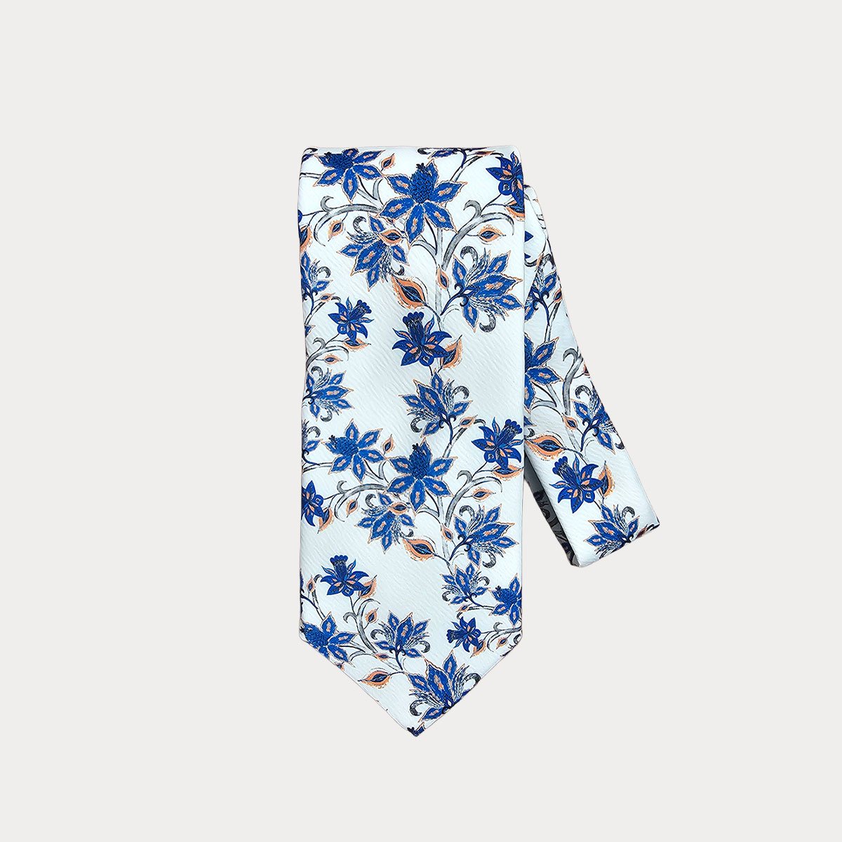 Floral White Blue Tie-Pocket Square