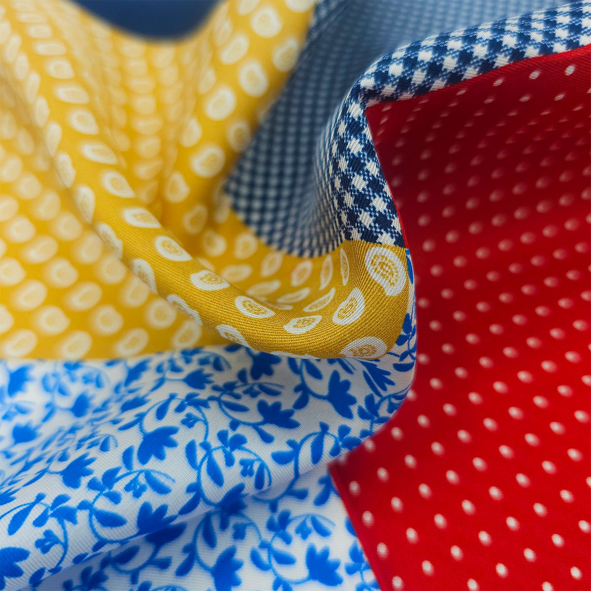 Red Blue Yellow Mix Pattern Pure Silk Pocket Square